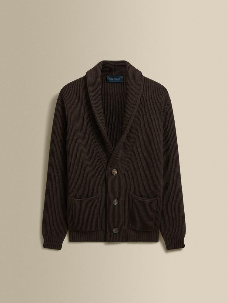Thom Sweeney | Men Merino Wool Single Breasted Shawl Cardigan Brown